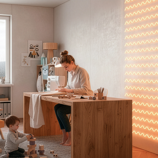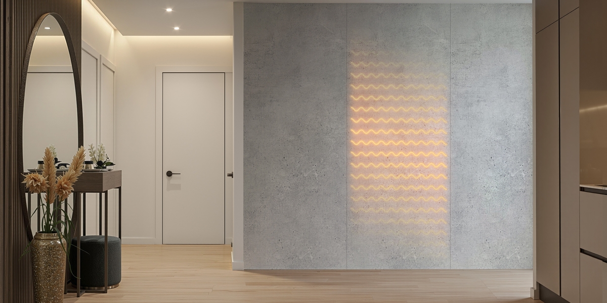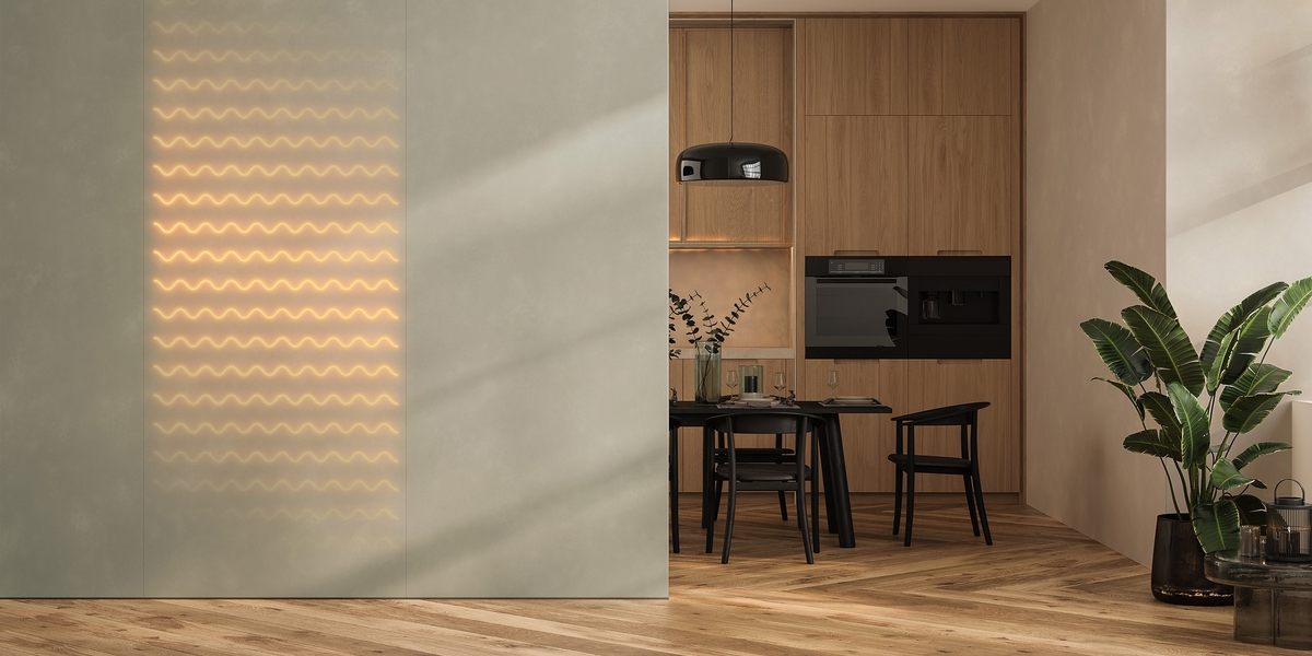 The LICO Heat+Wall is a printable wall panel with an integrated heating system. It is simply bonded to the wall using mounting adhesive and provides cozy, fireplace-like warmth in a very short time. A wide range of colors and surface textures is available. Thanks to its easy installation, it is ideal for retrofitting – with minimal effort.