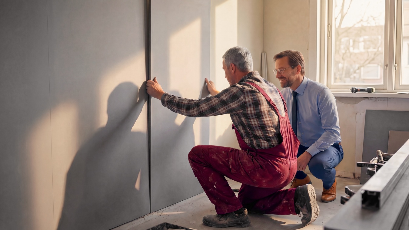 Example for new construction: Currently, 5–8 % of total construction costs are spent on heating, including piping, installation, the heating system, and all radiators. With the Heat+Wall, these costs can be drastically reduced – by up to 70 % – as a single Heat+Wall can heat a room of up to 30 m²*.